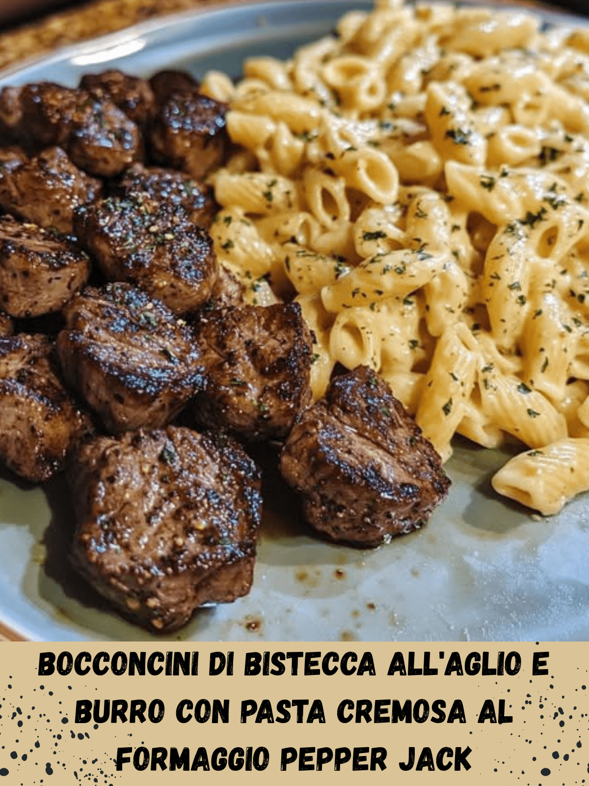 Bocconcini di Bistecca all’Aglio e Burro con Pasta Cremosa al Formaggio Pepper Jack