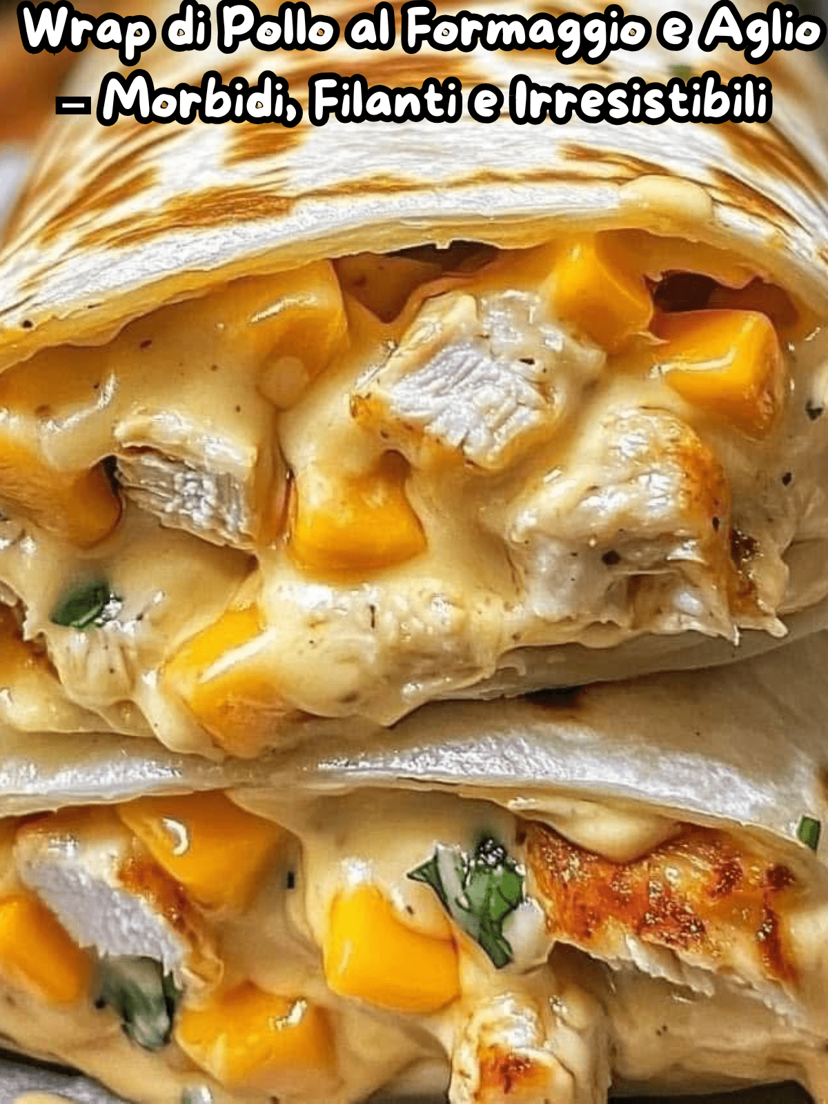 Questi deliziosi wrap di pollo al formaggio e aglio sono un piatto semplice e super gustoso, perfetto per un pranzo veloce o una cena sfiziosa. L’unione tra il pollo tenero, le due varietà di formaggio filante, e il profumo intenso dell’aglio soffritto, crea una farcitura cremosa e ricca, avvolta in una tortilla dorata e croccante fuori. Un tocco di prezzemolo fresco completa questa bontà fatta in casa.