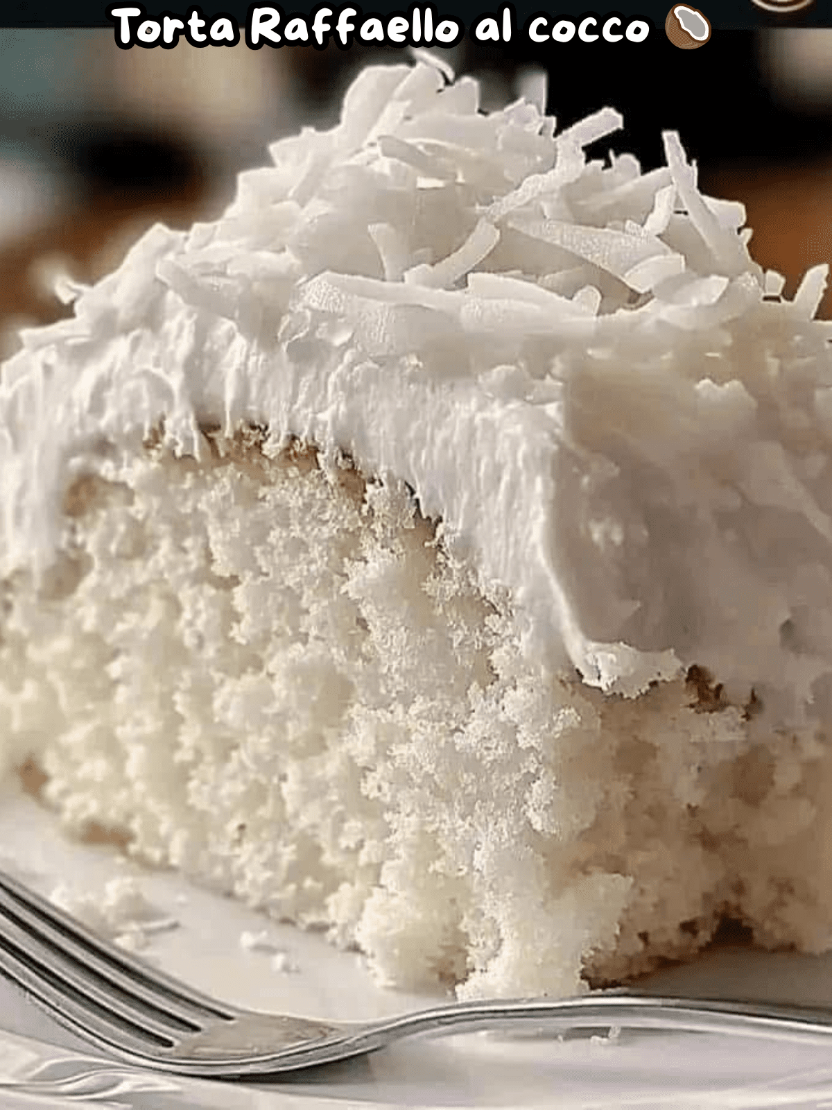 Una torta soffice e golosa, ispirata ai famosi cioccolatini Raffaello, con un cuore cremoso e una copertura irresistibile. Perfetta per le occasioni speciali o per un dolce momento da condividere.
