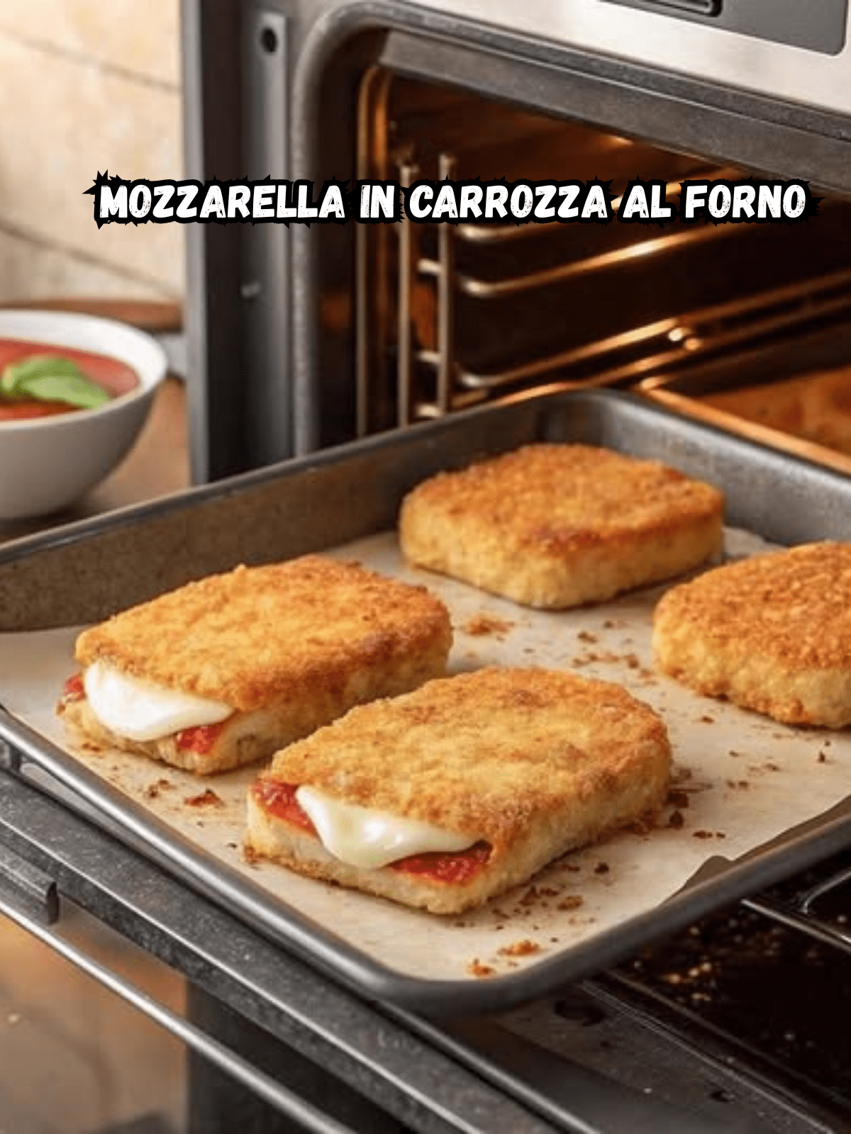 La mozzarella in carrozza al forno è una variante più leggera e salutare del classico fritto, perfetta per chi cerca un piatto gustoso ma senza troppi grassi. In questa versione al forno, il pane dorato e croccante racchiude un cuore filante di mozzarella, per un risultato irresistibile. Ideale come antipasto, piatto unico o stuzzichino, può essere arricchita con prosciutto o altri salumi per un tocco di sapore in più.