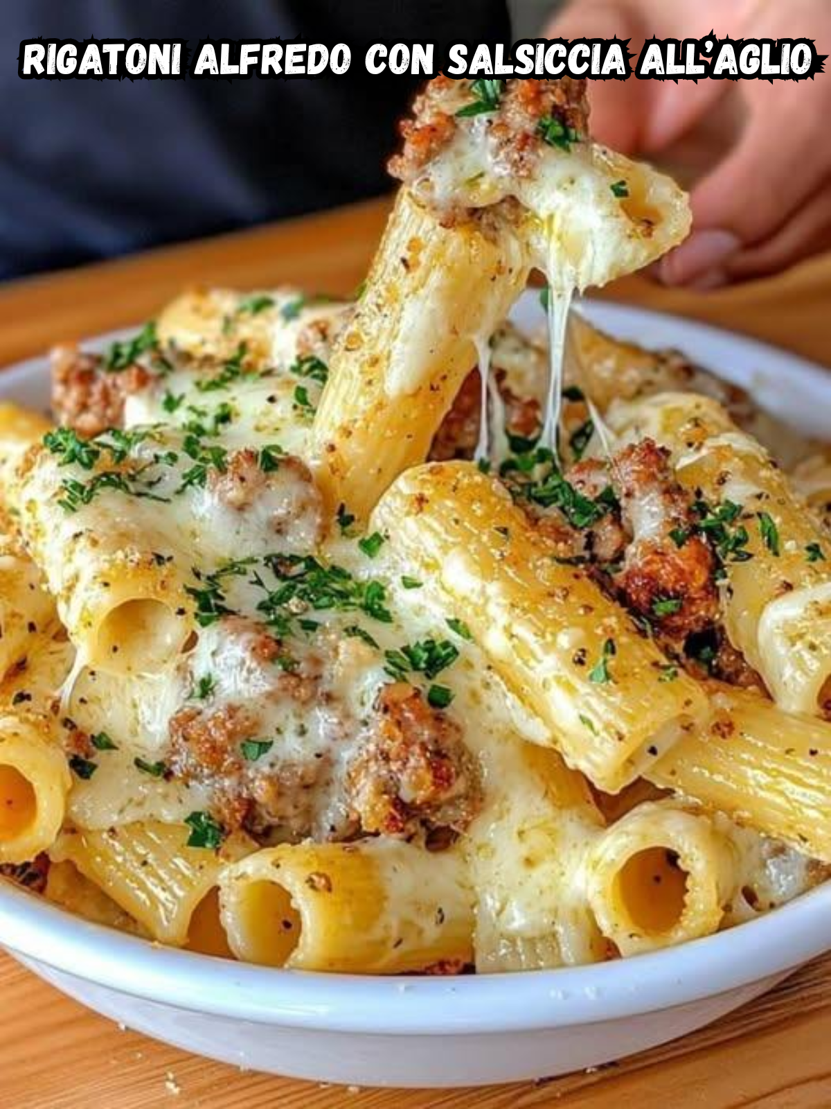 La consistenza corposa dei rigatoni è perfetta per accogliere il condimento denso e avvolgente, mentre la salsiccia, privata del budello e rosolata fino a doratura, dona una nota saporita e irresistibile. Il tutto è completato da una spolverata di prezzemolo fresco che aggiunge una leggera freschezza al piatto.