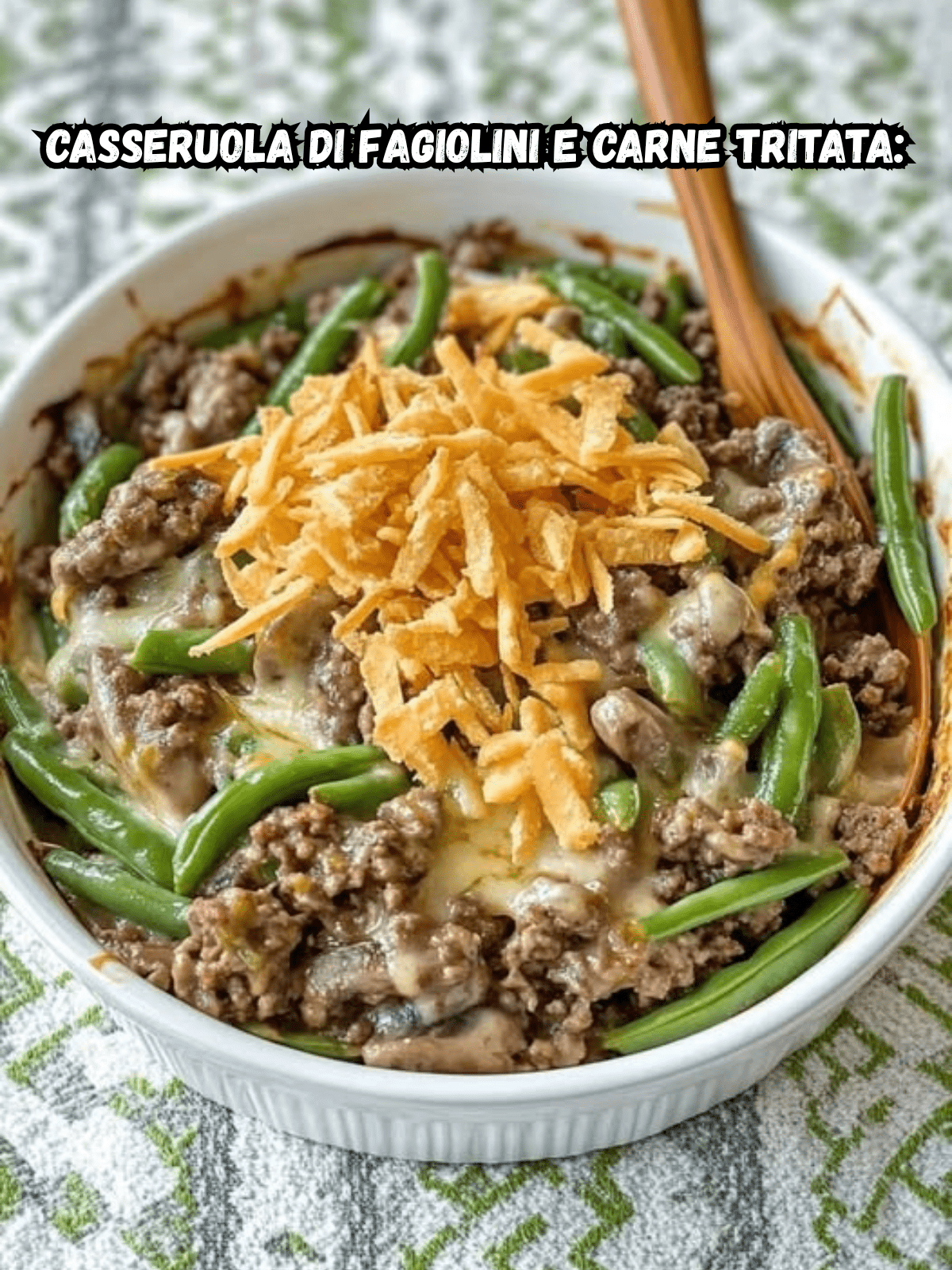 Questa ricetta è il perfetto esempio di comfort food: una casseruola cremosa e saporita a base di carne macinata, fagiolini, formaggio fuso e cipolle croccanti. Un piatto unico che conquista con la sua semplicità e con un sapore ricco e soddisfacente. Ideale per una cena in famiglia o per un pasto abbondante durante i giorni più freschi, questa casseruola di carne e fagiolini è un modo delizioso per utilizzare ingredienti che probabilmente hai già in casa.