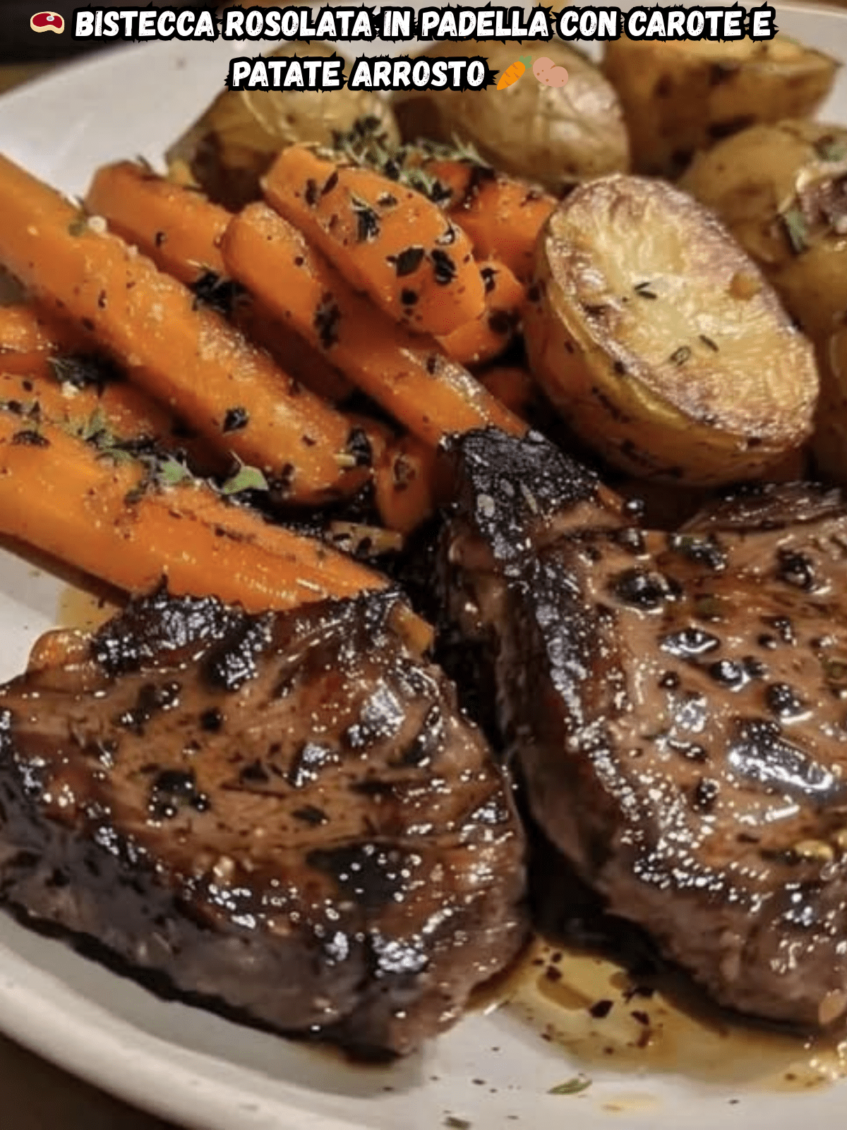 Un piatto intramontabile che celebra la semplicità e il gusto autentico degli ingredienti. Questa bistecca rosolata in padella, accompagnata da carote dolci e patate rustiche al forno, è il perfetto esempio di comfort food raffinato, ideale per una cena speciale ma semplice da realizzare. La carne è succosa e tenera, mentre le verdure arrosto sprigionano sapori caramellati e caldi. Un connubio perfetto da gustare in ogni stagione.