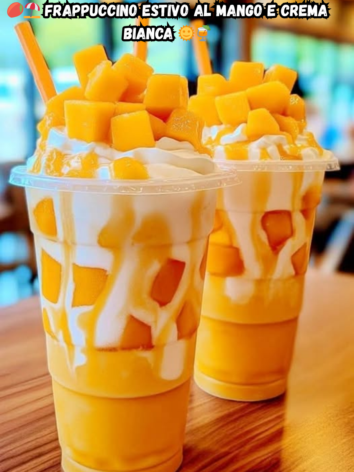 Il Frappuccino Estivo al Mango e Crema Bianca è una bevanda cremosa, fruttata e golosa che unisce il sapore esotico del mango maturo alla delicatezza della crema alla vaniglia. Questa ricetta è perfetta per rinfrescarsi durante l’estate, da gustare in terrazza, in giardino o anche sotto l’ombrellone. Il mix di frutta, latte e yogurt (o panna montata) crea una consistenza vellutata e avvolgente, mentre i pezzetti di mango fresco e il tocco finale di sciroppo rendono ogni sorso un piccolo momento di piacere tropicale. Facile da preparare, scenografico da servire e irresistibile da bere.
