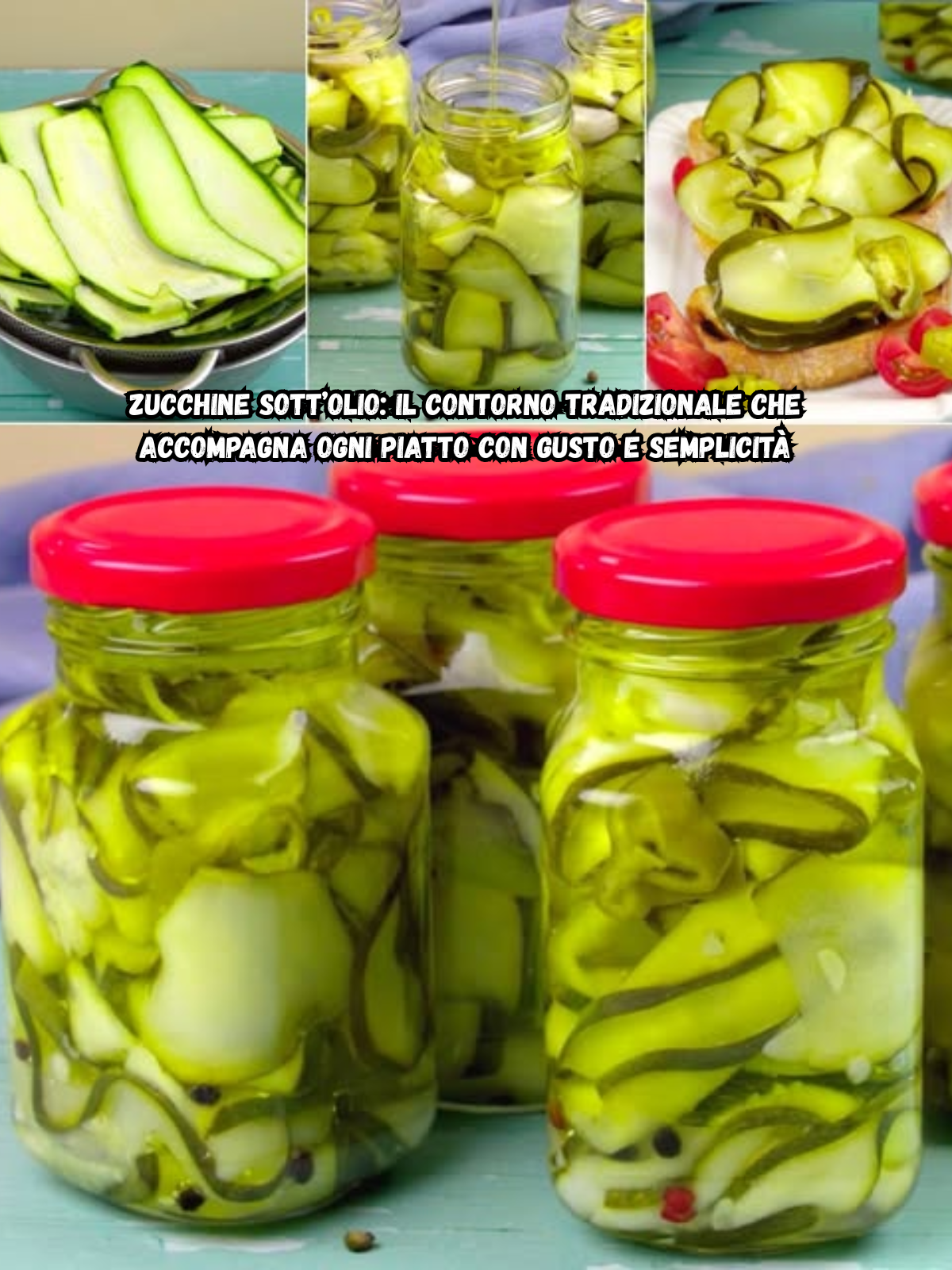 Le zucchine sott’olio sono ideali come antipasto rustico, come contorno leggero o per arricchire un tagliere di salumi e formaggi. Perfette anche su una bruschetta o accanto a secondi piatti di carne o pesce, portano in tavola tutto il sapore dell’orto e dell’estate.