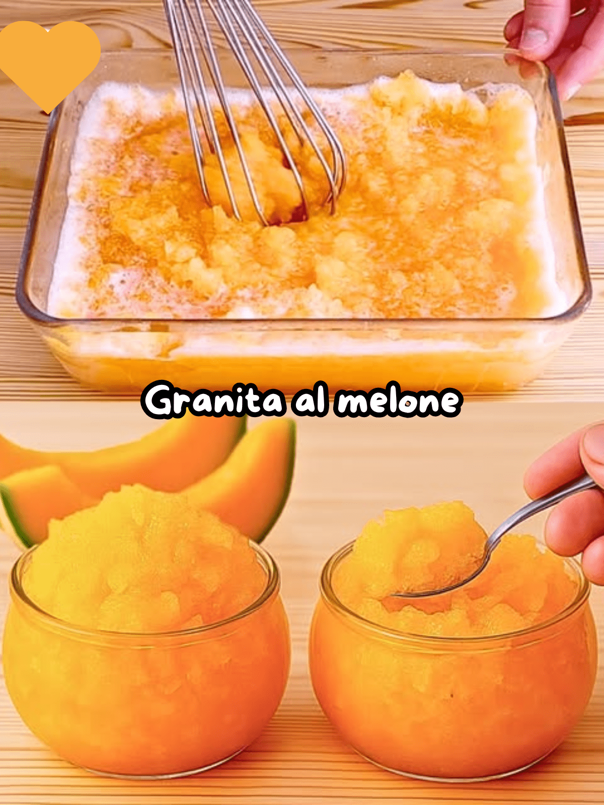 La varietà consigliata è il melone cantalupo, con polpa arancione, dolce e profumata. Servita in coppe individuali e decorata con foglioline di menta, la granita al melone diventa un dolce scenografico, genuino e irresistibile per adulti e bambini. E se vuoi stupire i tuoi ospiti, puoi servirla direttamente nella scorza del melone svuotato, trasformato in una ciotola naturale ed elegante.