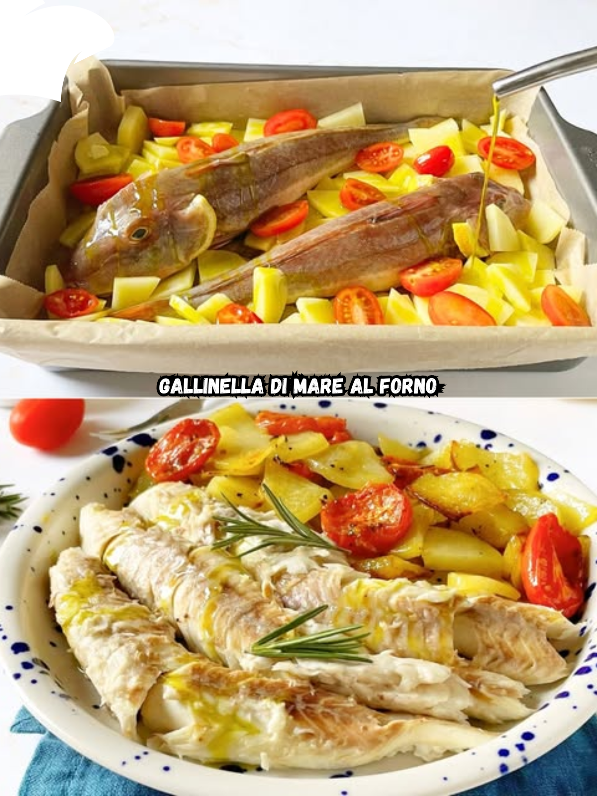 La gallinella di mare al forno è un secondo piatto di pesce semplice e genuino, perfetto per chi ama portare in tavola sapori delicati ma ricchi di carattere. Questo pesce, conosciuto anche come coccio, lucerna o cappone di mare, è apprezzato per le sue carni magre, sode e leggere, ideali per un’alimentazione sana ma senza rinunciare al gusto. Nella versione al forno, la gallinella viene cotta intera su un letto di patate a tocchetti e pomodorini condita con olio extravergine d’oliva, succo d’arancia, fette di limone, vino bianco e rametti di rosmarino fresco.