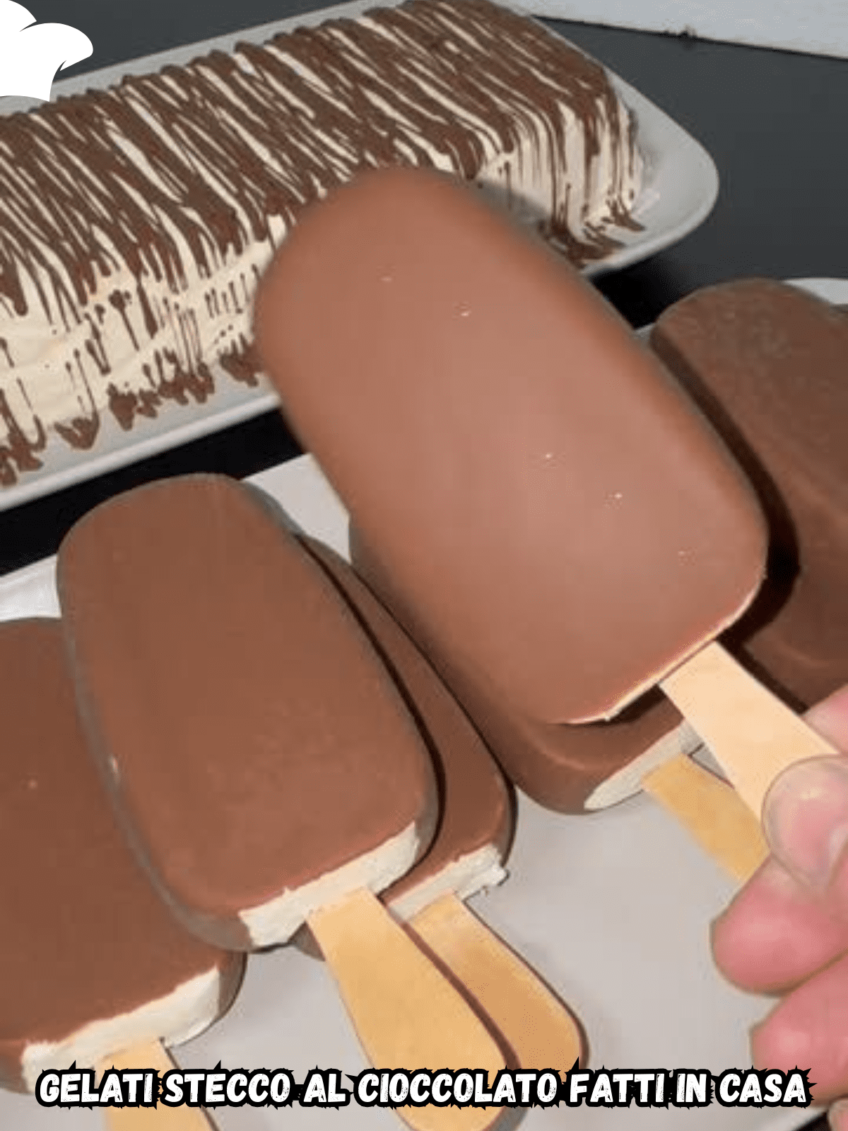 Vuoi preparare a casa dei gelati stecco al cioccolato talmente buoni da sembrare usciti da una gelateria artigianale? Con questa ricetta semplice e golosa, otterrai un dessert perfetto per l’estate: fresco, cremoso e avvolto da una croccante copertura al cioccolato. Il cuore è di panna montata e latte condensato, mentre l’esterno è ricoperto da uno strato liscio di cioccolato al latte che si scioglie in bocca.