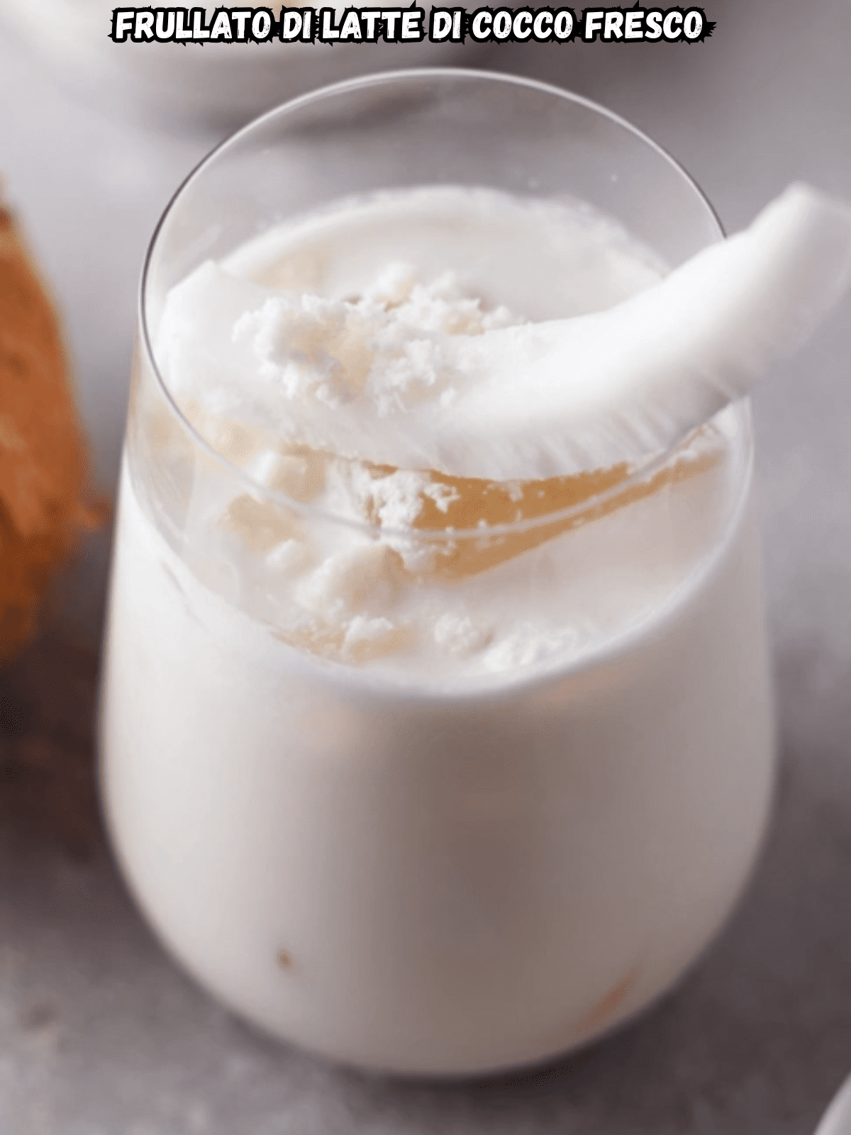 Il frullato di latte di cocco fresco è una bevanda tropicale e rigenerante, perfetta per le giornate calde o come coccola salutare durante tutto l’anno. Preparato con la polpa e l’acqua del cocco giovane, questo smoothie si distingue per la sua dolcezza naturale, la consistenza cremosa e il profumo delicato. Ricco di elettroliti, fibre e grassi buoni, è un vero toccasana per il corpo e una delizia per il palato. Ideale come spuntino energetico, colazione leggera o bevanda post-allenamento, questo frullato si prepara in pochi minuti e senza zuccheri raffinati. La chiave è usare un cocco giovane e fresco, che conserva tutta la sua dolcezza e leggerezza naturale. Se ami i gusti tropicali e cerchi qualcosa di sano, naturale e gustoso, questo smoothie fa proprio al caso tuo.