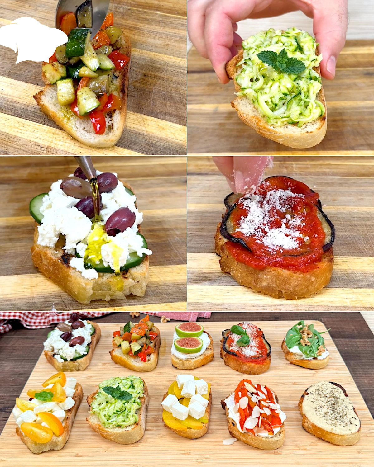 Queste dieci proposte sono pensate per portare freschezza e colore a tavola, perfette per un aperitivo con gli amici, un antipasto in famiglia o addirittura come piatto unico in una serata estiva. Si spazia da abbinamenti tradizionali, come la caprese o la parmigiana, fino a gusti più particolari, come le bruschette con hummus di ceci, con susine e primosale o con zucchine marinate e menta.