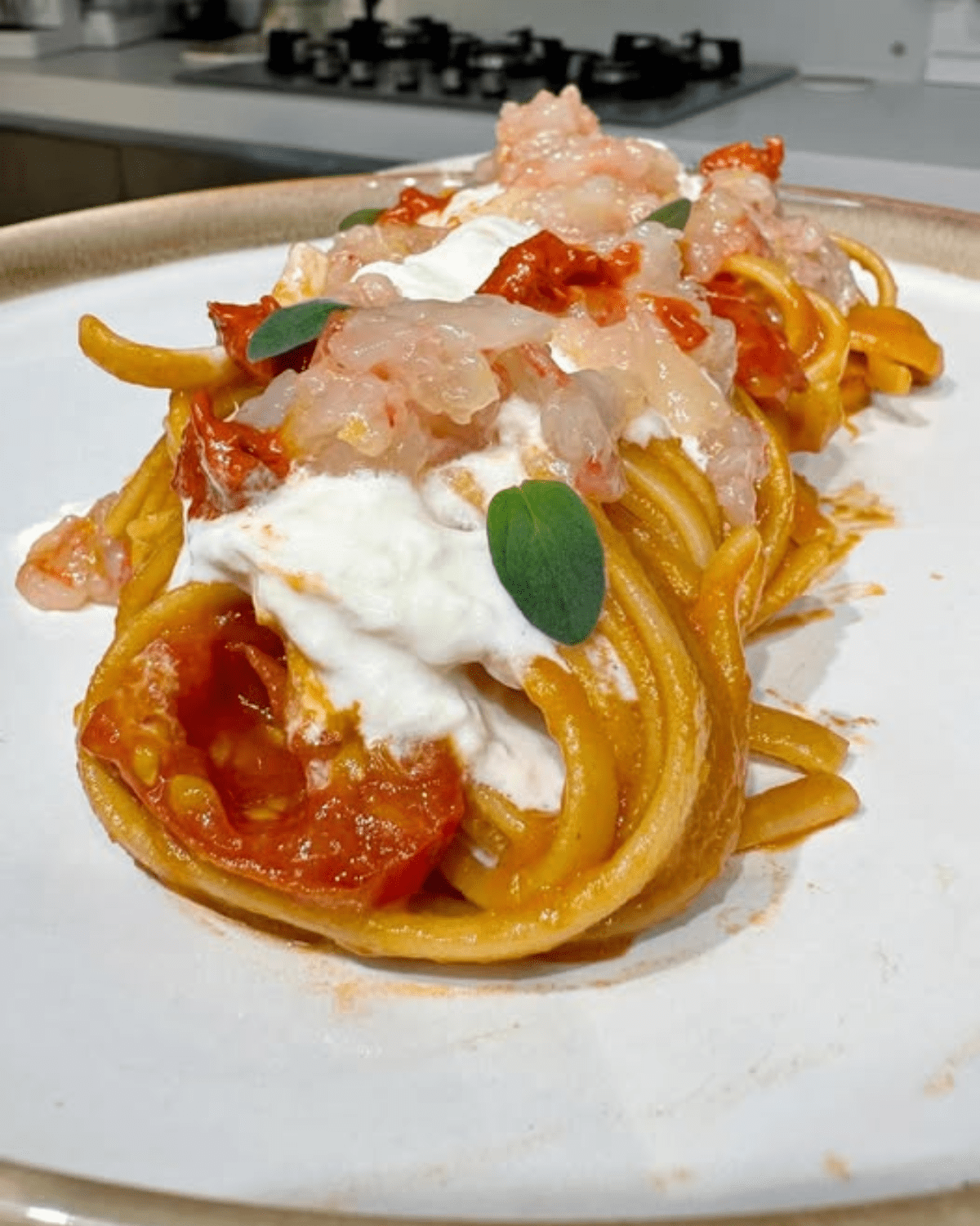 Linguine con Gamberi Rossi, Stracciatella e ‘Nduja: Un Primo Piatti di Mare Cremoso e Piccante