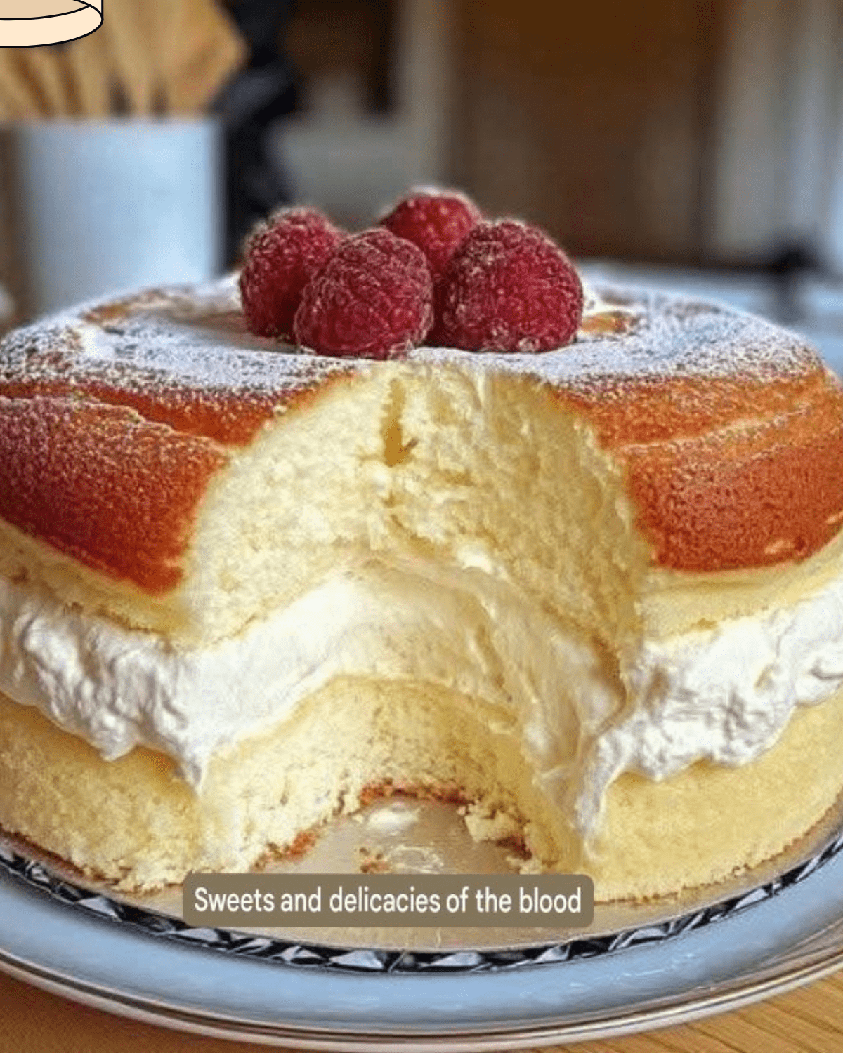 Una nuvola di soffice pan di Spagna che si scioglie in bocca, racchiudendo un cuore di panna montata vellutata e decorata con lamponi rossi come rubini. Ispirata alla pasticceria giapponese, questa torta unisce la leggerezza di un soufflé cake all’eleganza di una presentazione minimalista: ogni fetta sprigiona aria di giardino in fiore e un profumo delicato di vaniglia. La spolverata di zucchero a velo ricorda una nevicata primaverile, mentre i lamponi freschi aggiungono un tocco di acidità che bilancia perfettamente la dolcezza. Perfetta per un tè pomeridiano, un compleanno raffinato o per sorprendere gli ospiti con un dolce che sembra venuto da un’altra galassia di morbidezza.