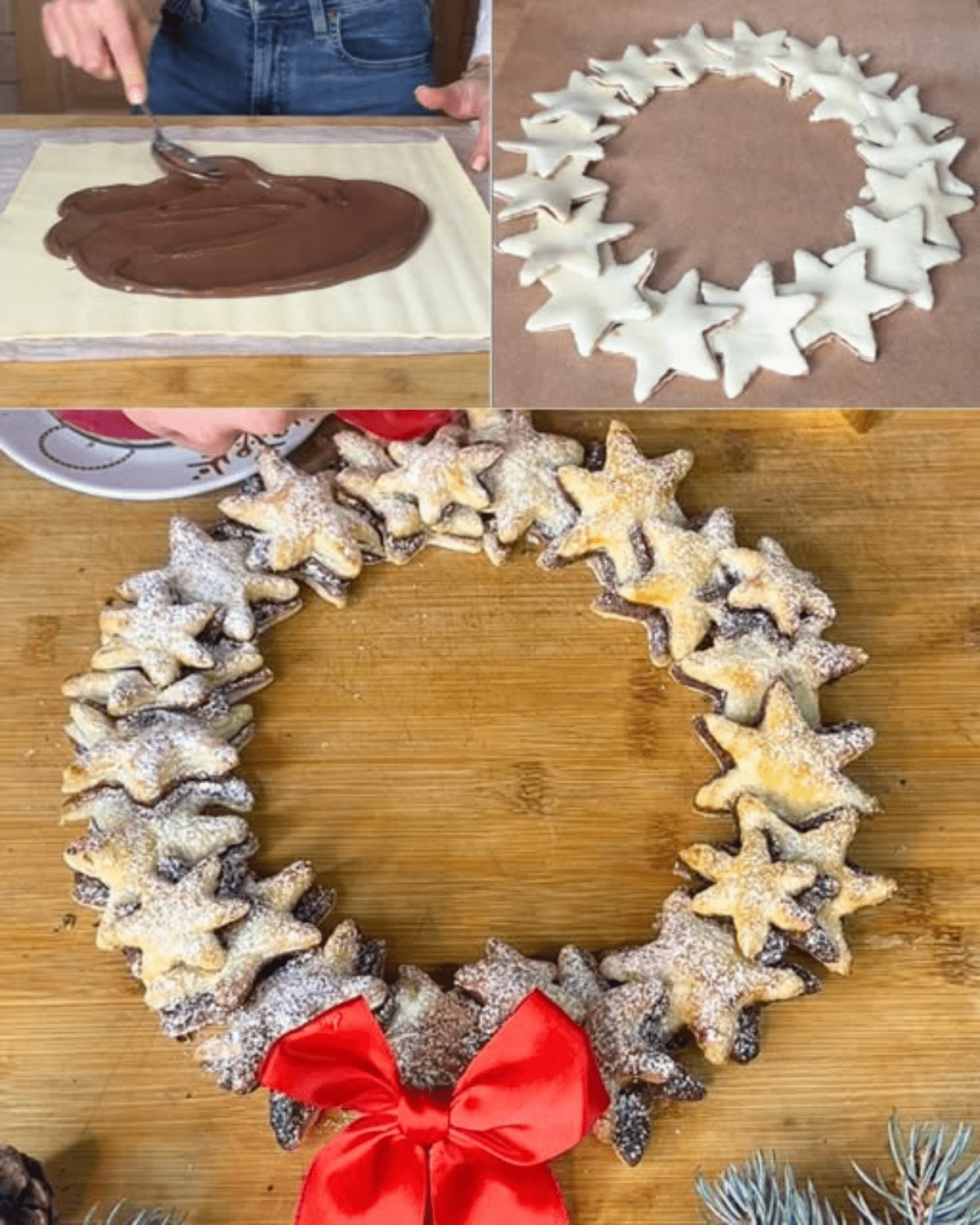 Con pochi ingredienti e in meno di un’ora puoi portare in tavola un dolce che sembra uscito da una vetrina natalizia: stelle di sfoglia ripiene, disposte a forma di corona, lucide grazie a una spennellata di tuorlo e zucchero e completate da una neve finissima di zucchero a velo. Preparala con anticipo o al momento: sarà comunque un successo.